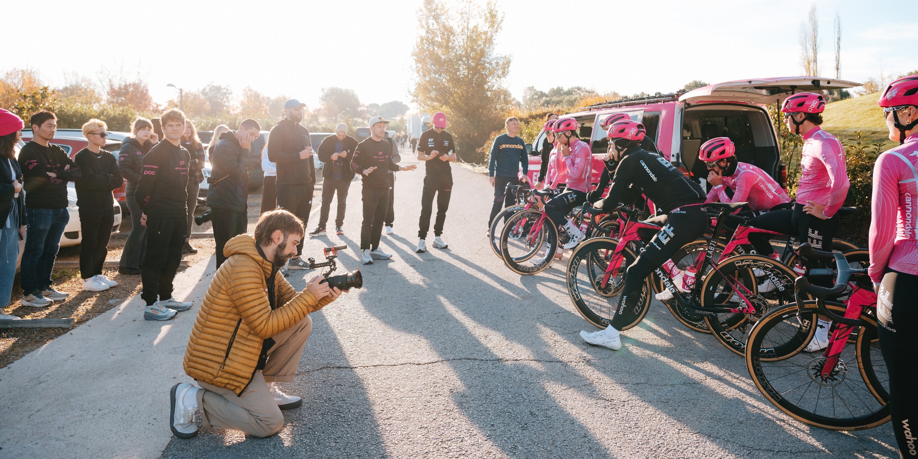 La Machine ist stolz darauf, die gesamte EF Pro Cycling Organisation auszustatten. Von den World Tour Teams der Männer und Frauen bis hin zu den zukünftigen Stars des Development-Teams und der engagierten Crew hinter den Kulissen. Sobald der Helm abgenommen wird, vereint sich das Team in einer gemeinsamen Ästhetik. Ein Kollektiv, gekleidet in Klarheit.